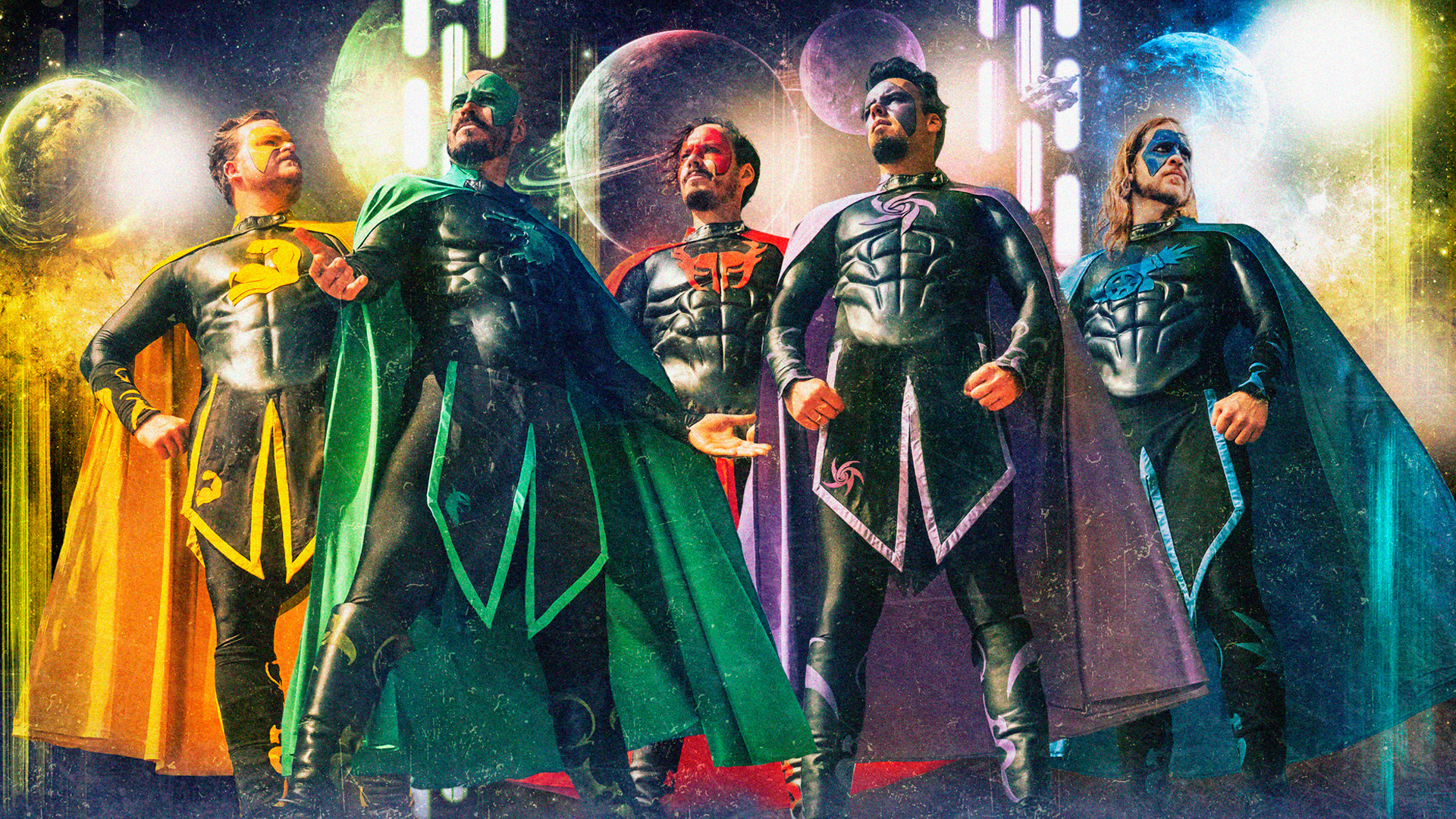 To make sure that their cape-wearing followers will be able to manage the needed sprints to the record shops of the universe, GRAILKNIGHTS lead them down into their legendary catacombs where their ‘Grail Gym’ is located. It’s the strengthening site where the enormously musical superhero five-piece backs down regularly to recharge their batteries for new challenges. Who wouldn’t easily turn up the heat at a place like that? Here you have the choice of drill: intergalactic spinning, tough battle ropes and power chains or the supreme discipline - bench press! Additional motivation for Sir Optimus Prime, Sovereign Storm, Count Cranium, Duncan MacLoud and Lord Drumcules is provided by four not minorly energising ladies (Anni Quinn, Fuxi, Lady Kikki and Sarah Sparklz) who compete with the GRAILKNIGHTS especially on their bikes. What a sight! But as usual, a well-known guest is just about to make an unpleasant appearance...